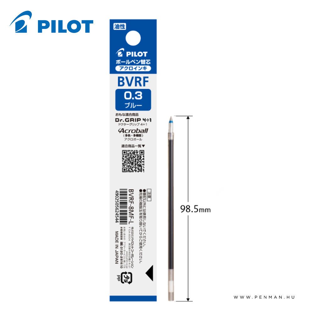 A Pilot Acro 500 tollbetét egy finom vonalvastagságú, olajalapú tinta, amelyet precíz, tiszta íráshoz terveztek. A 0,3 mm-es íróhegy keskeny, jól kontrollálható vonalat ad, ezért különösen alkalmas jegyzeteléshez, űrlapkitöltéshez és sűrűn írt szöveghez. Az Acro tinta alacsony viszkozitású olajalapú összetétel, amely a hagyományos golyóstollaknál könnyebb siklást biztosít a papíron. Az írás kevésbé szakadozik, a tinta gyorsan megszárad a papíron, így csökken az elkenődés esélye.