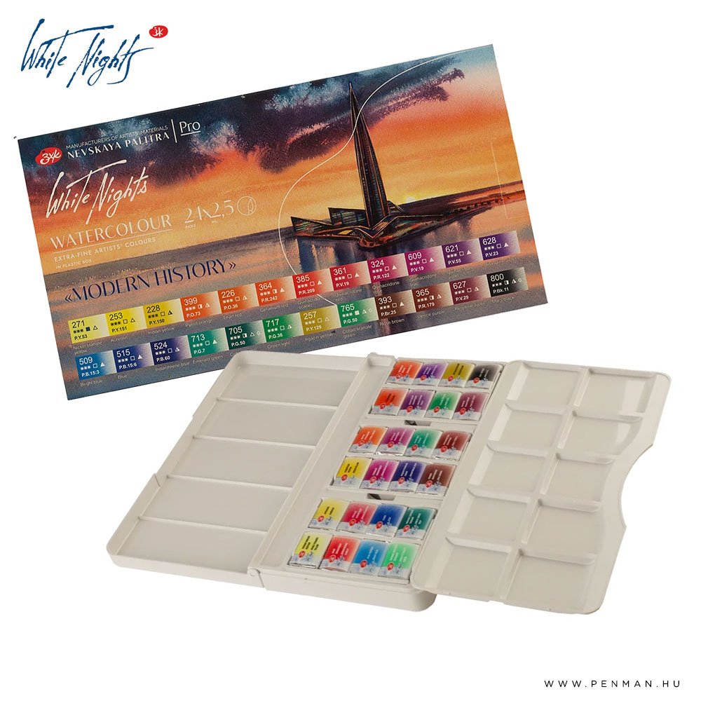 White Nights 24 egész szilkés akvarellkészlet Modern History